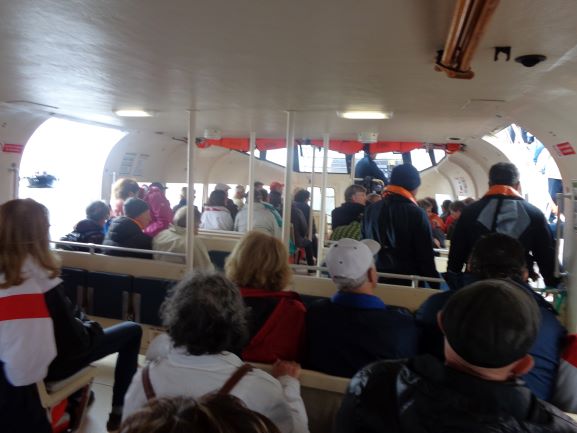 Grande nouveauté, on est sorti du bateau avec les chaloupes. Bon, les chaloupes, c’est pas des barques mais des espèces de bateaux complètement fermés où les gens s’entassent dedans.