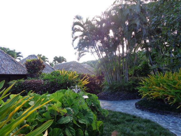 On a aussi traversé un hôtel construit en mode village polynésien, le rêve. Il faut absolument qu’on revienne ici. Mais, avant, il va falloir économiser parce que les prix sont fortiches. C’est pas gratuit le paradis.